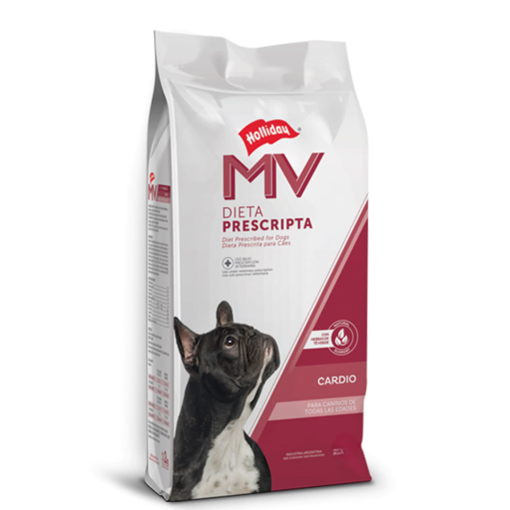 MV CARDIACO es una dieta prescrita diseñada específicamente para perros cachorros, adultos y gerontes que padecen hipertensión arterial o enfermedades cardíacas. Esta fórmula única disminuye el riesgo de hipertensión y retención de líquidos gracias a sus bajos niveles de sodio.
