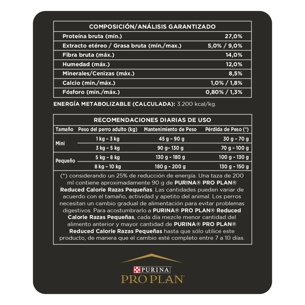 PRO PLAN® Reduced Calorie Small es la solución ideal para mantener a tu perro en un peso corporal saludable y lograr una condición óptima. Esta fórmula de vanguardia está diseñada para facilitar la pérdida de peso de manera saludable, asegurando que tu mascota no solo se vea bien, sino que también esté saludable a largo plazo.